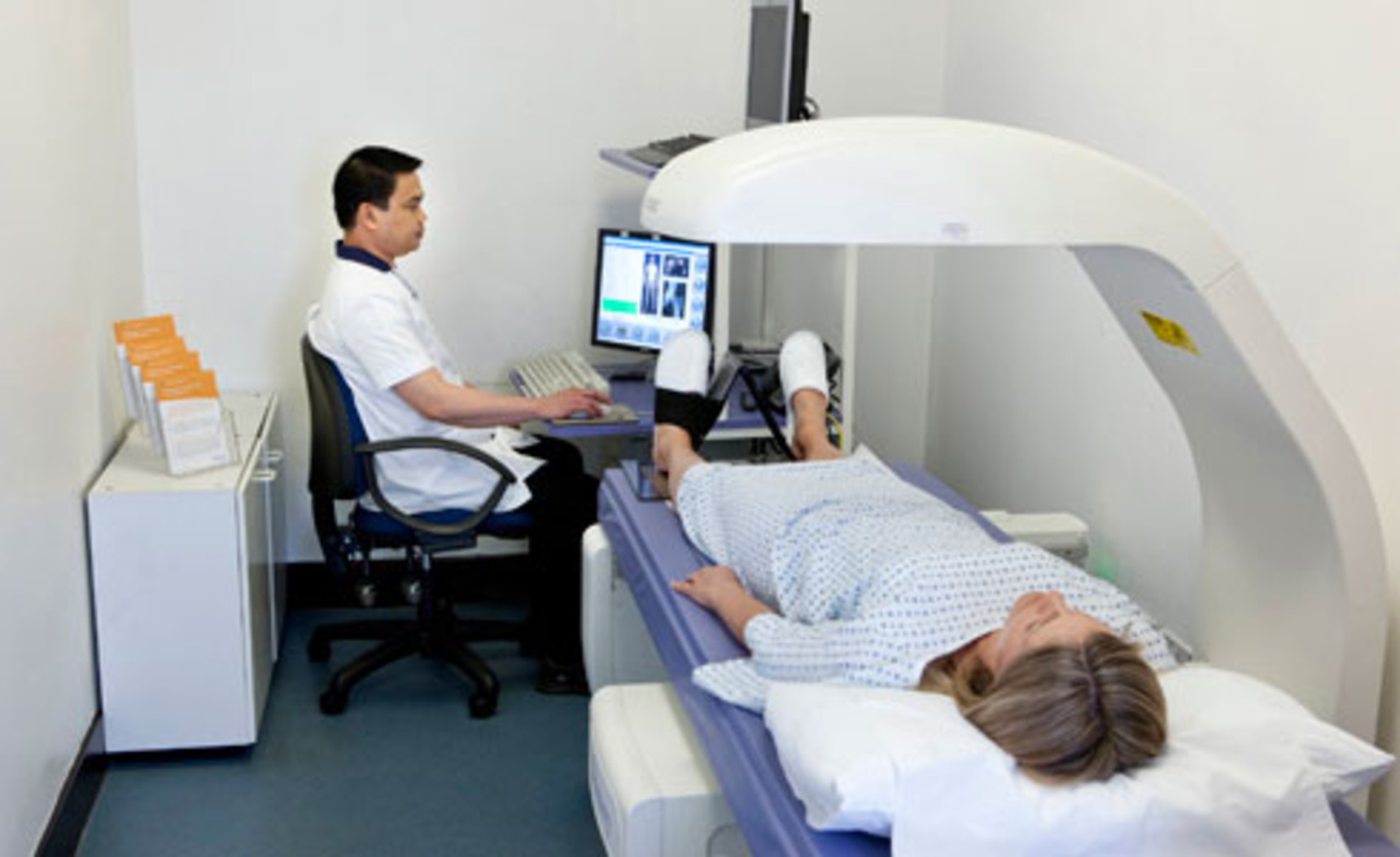 DEXA scans use a fine beam of x-rays to measure bone density, typically within the hips and spine. The process takes about ten minutes and is painless. Many of our centers offer this service as a way of quantifying osteoporosis or brittle bones for our patients in order to help predict who is at risk for hip, wrist, spine and other fractures from minor falls.