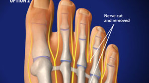 Morton's neuroma is an enlarged nerve, compressed or pinched between the bones and the ligament that holds them together. This procedure eases the pain by releasing pressure from the nerve or removing the nerve.