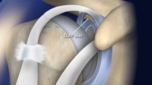 This arthroscopic procedure is performed to repair a tear of the biceps tendon at the point where it connects to the labrum, a ring of cartilage that surrounds the shoulder socket. A tear at this point is called a SLAP (Superior Labrum Anterior-Posterior) tear. SLAP repair is performed under general and regional anesthesia, and patients usually leave the hospital the same day.