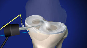 The meniscus is a band of cartilage in the knee that acts as a shock absorber and provides stability to the knee joint. The meniscus helps protect the articular cartilage, the smooth covering on the ends of the femur and tibia. If a meniscus tears, it can often be repaired through arthroscopic surgery.